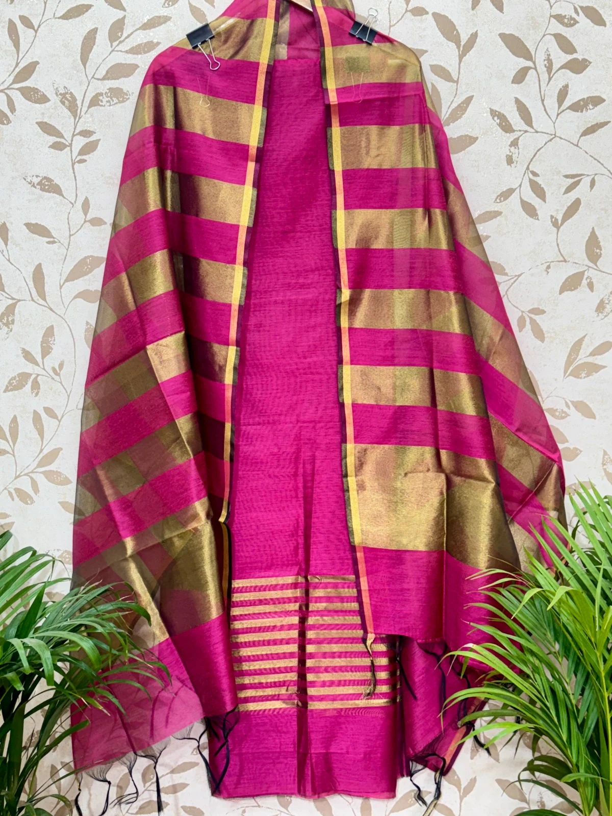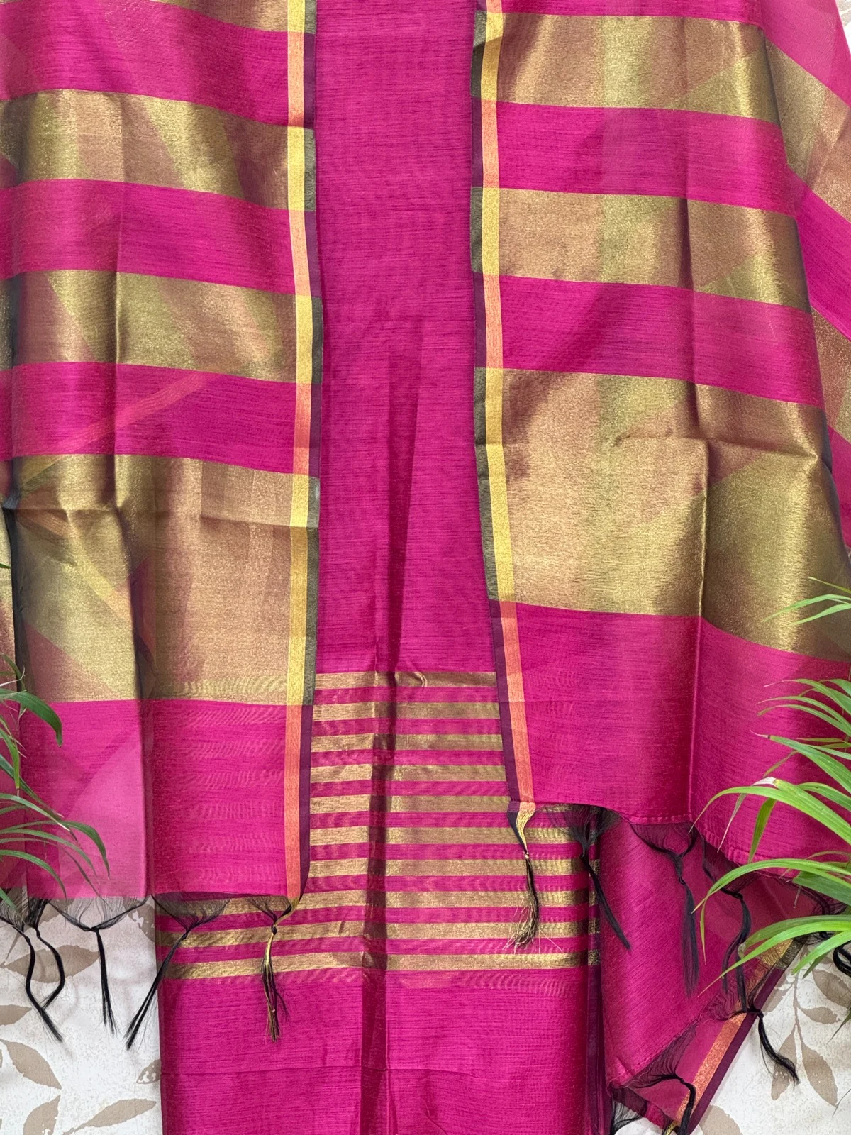 Banarasi Cotton Suit Set with Golden Tissue Border