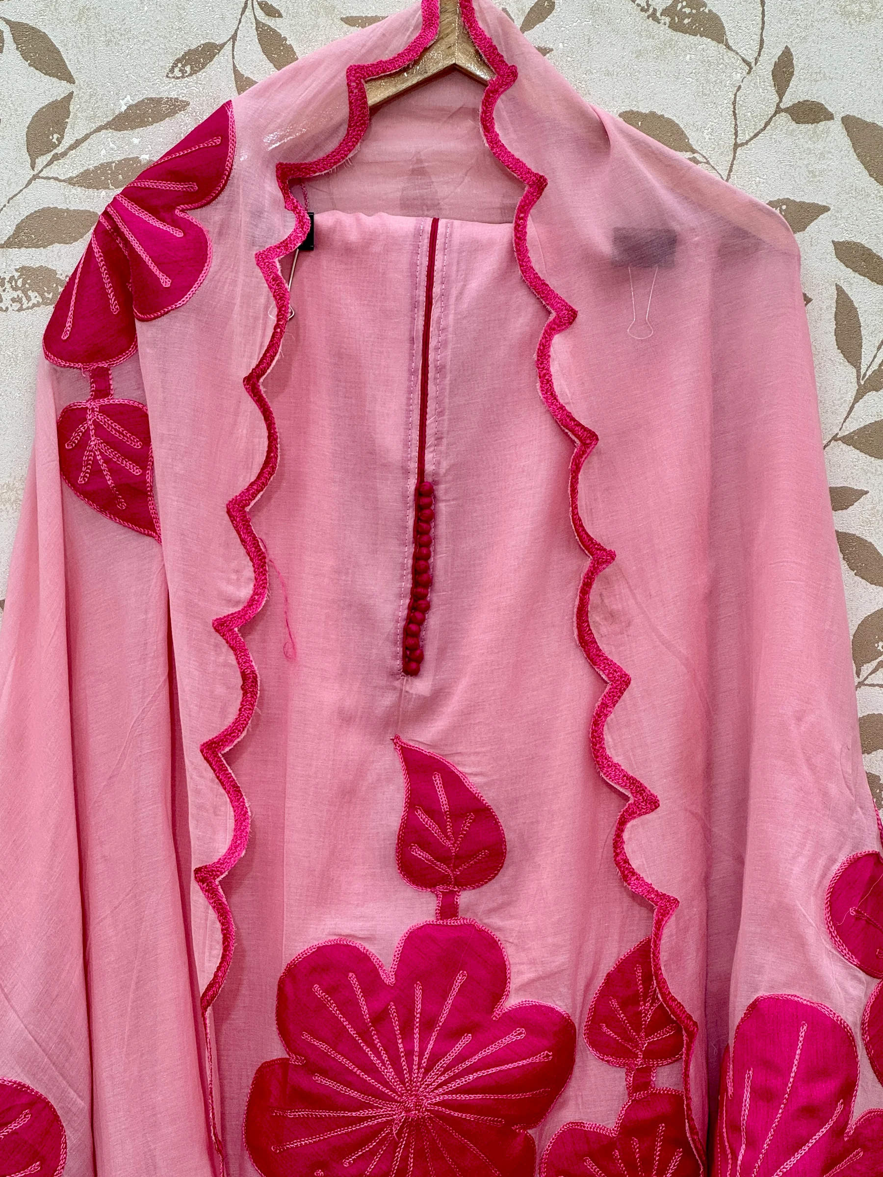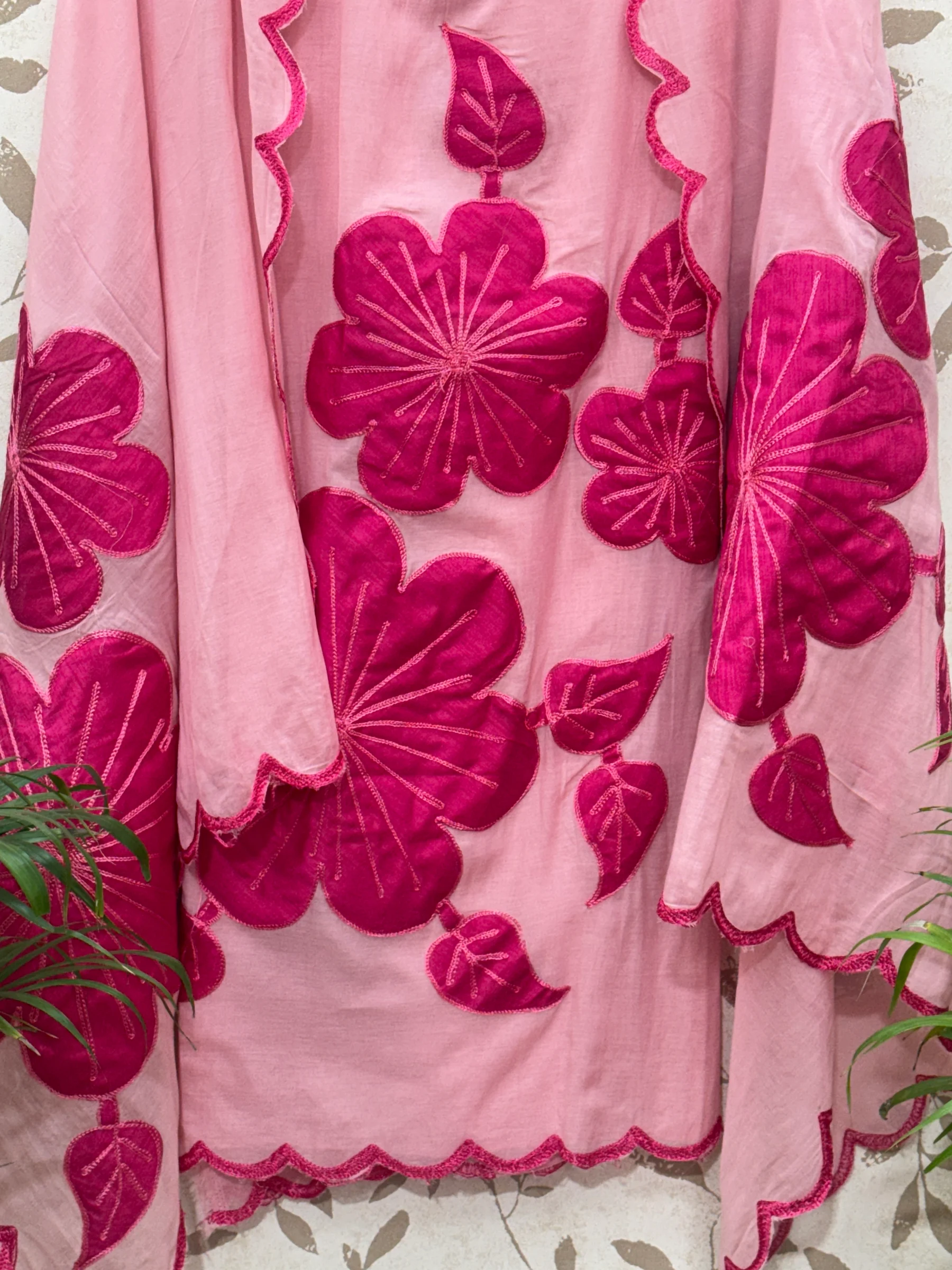 Blush Pink Floral Appliqué Work Mul Cotton Suit Set