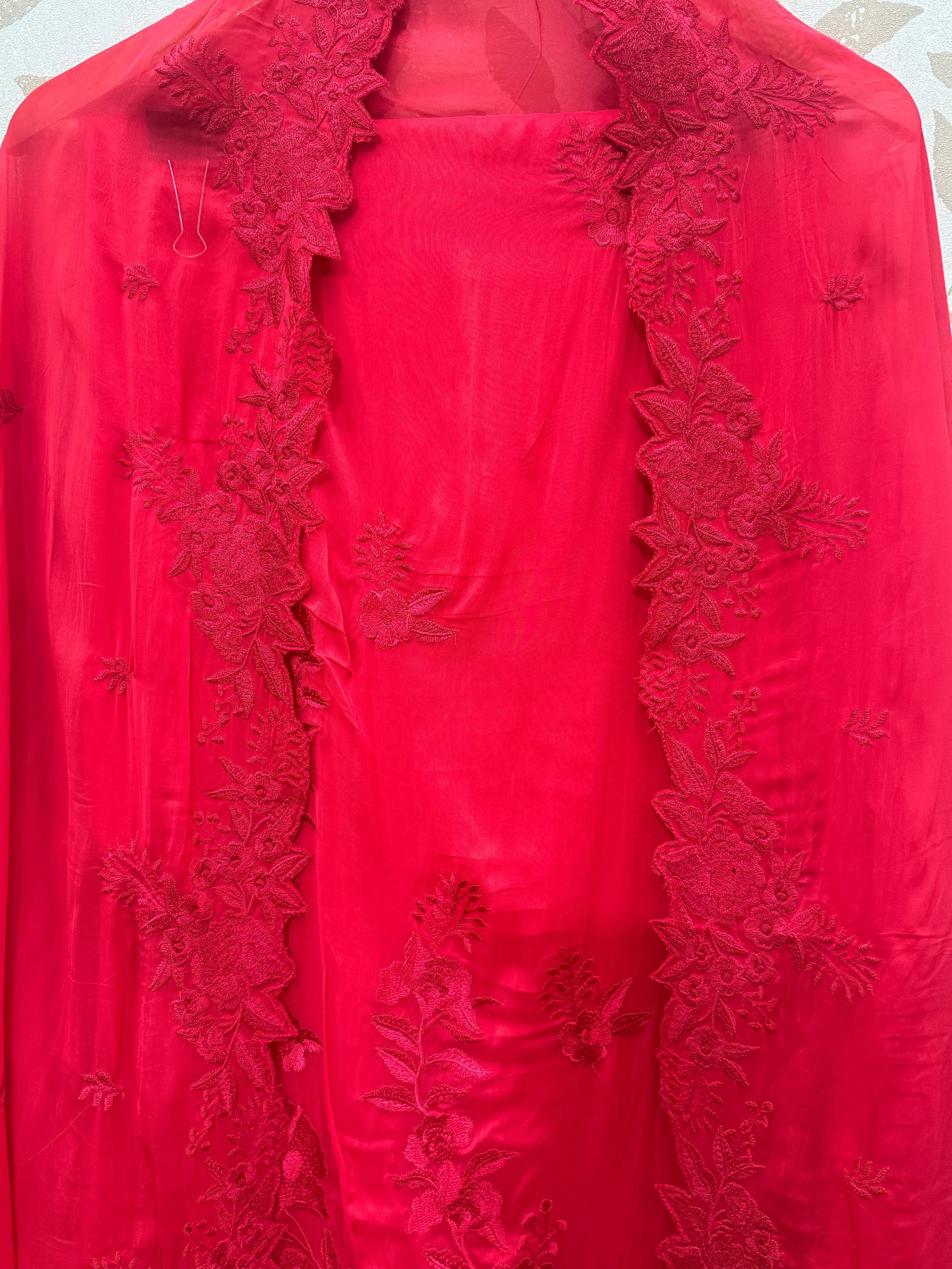 Crimson Red Embroidered OrganzaSilk Suit Set