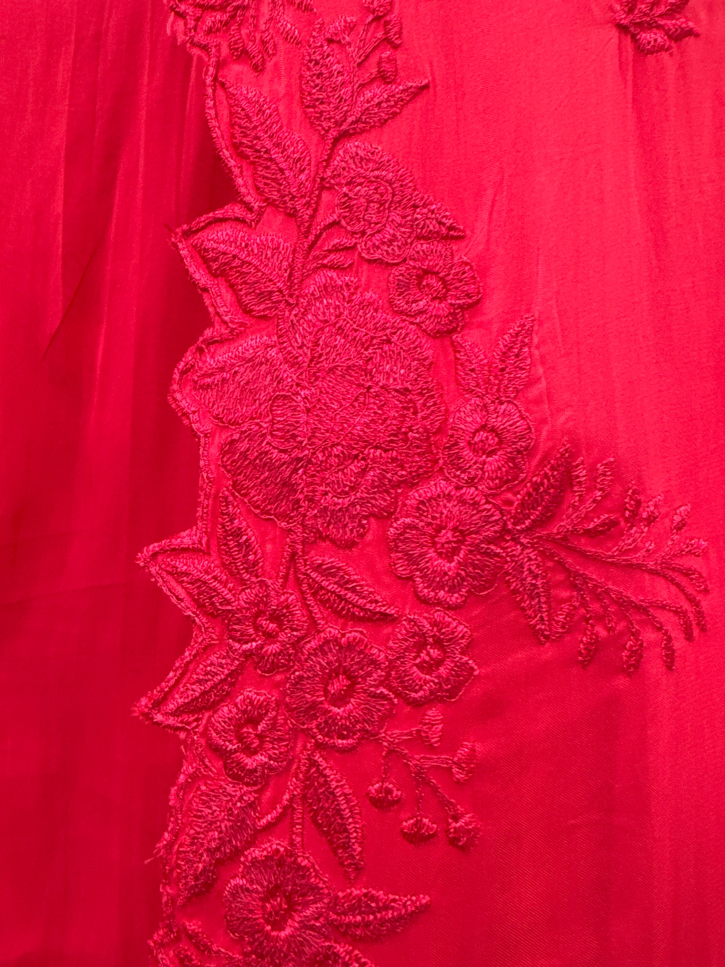 A rich crimson red ensemble designed with refined tone-on-tone embroidery for a luxurious and sophisticated look.