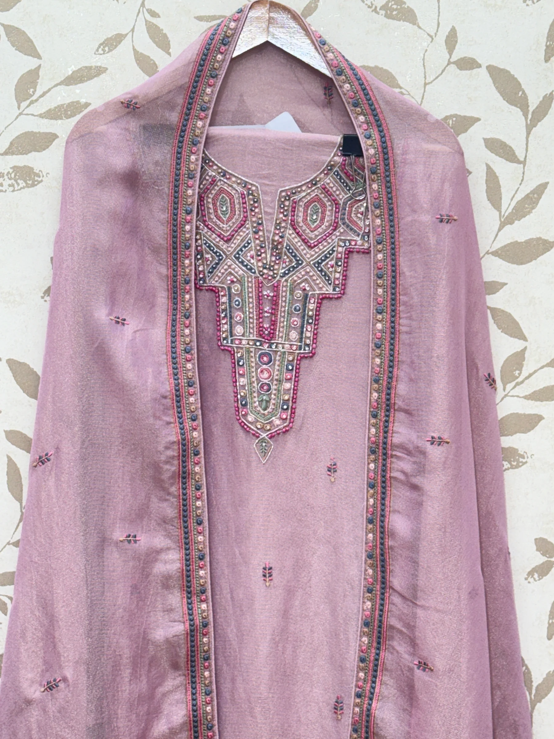 Dusty Rose Handcrafted Embroidery Imported Silk Suit Set