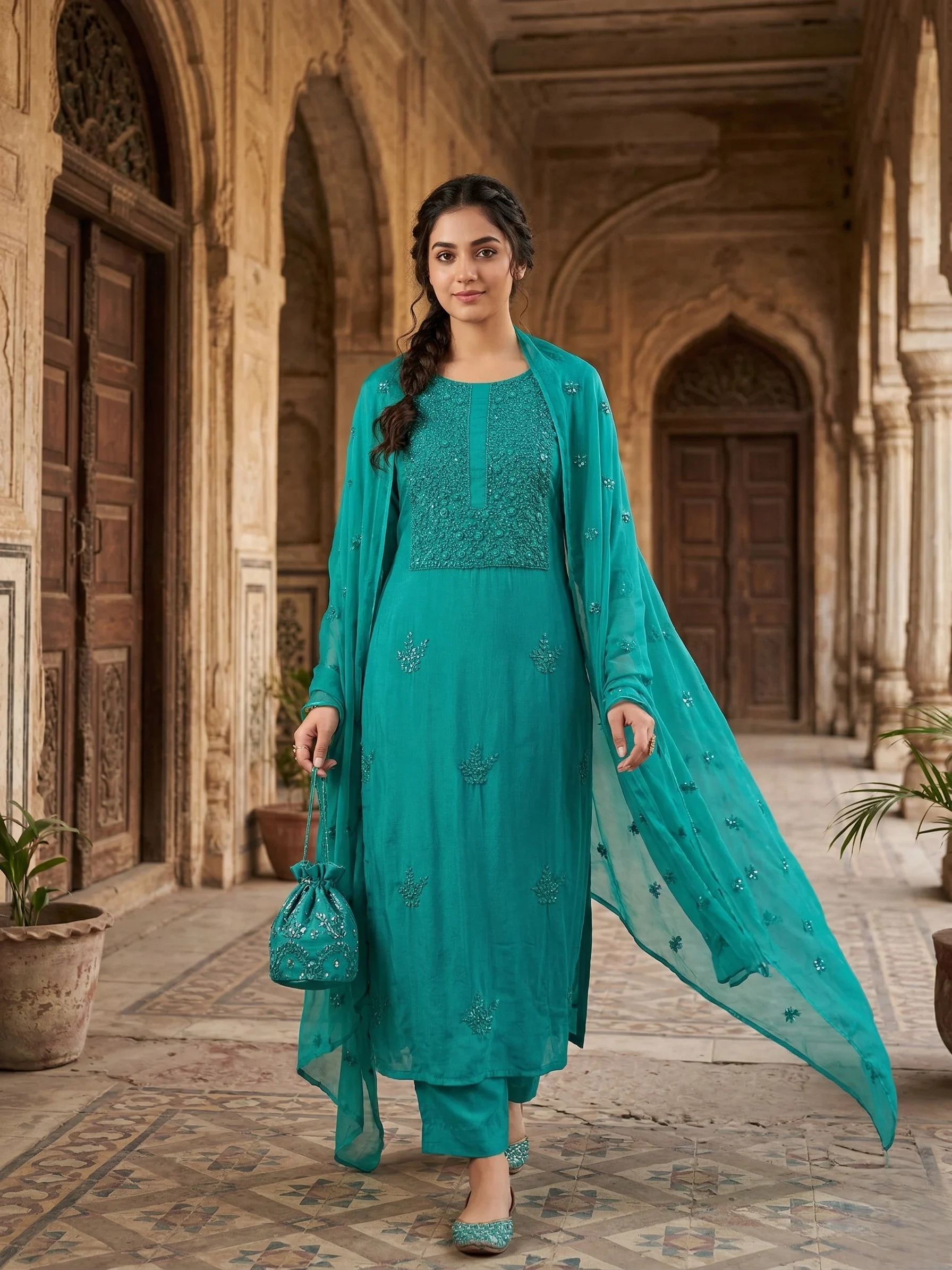 • Bottom: Soft cotton silk shantoon in matching base colour