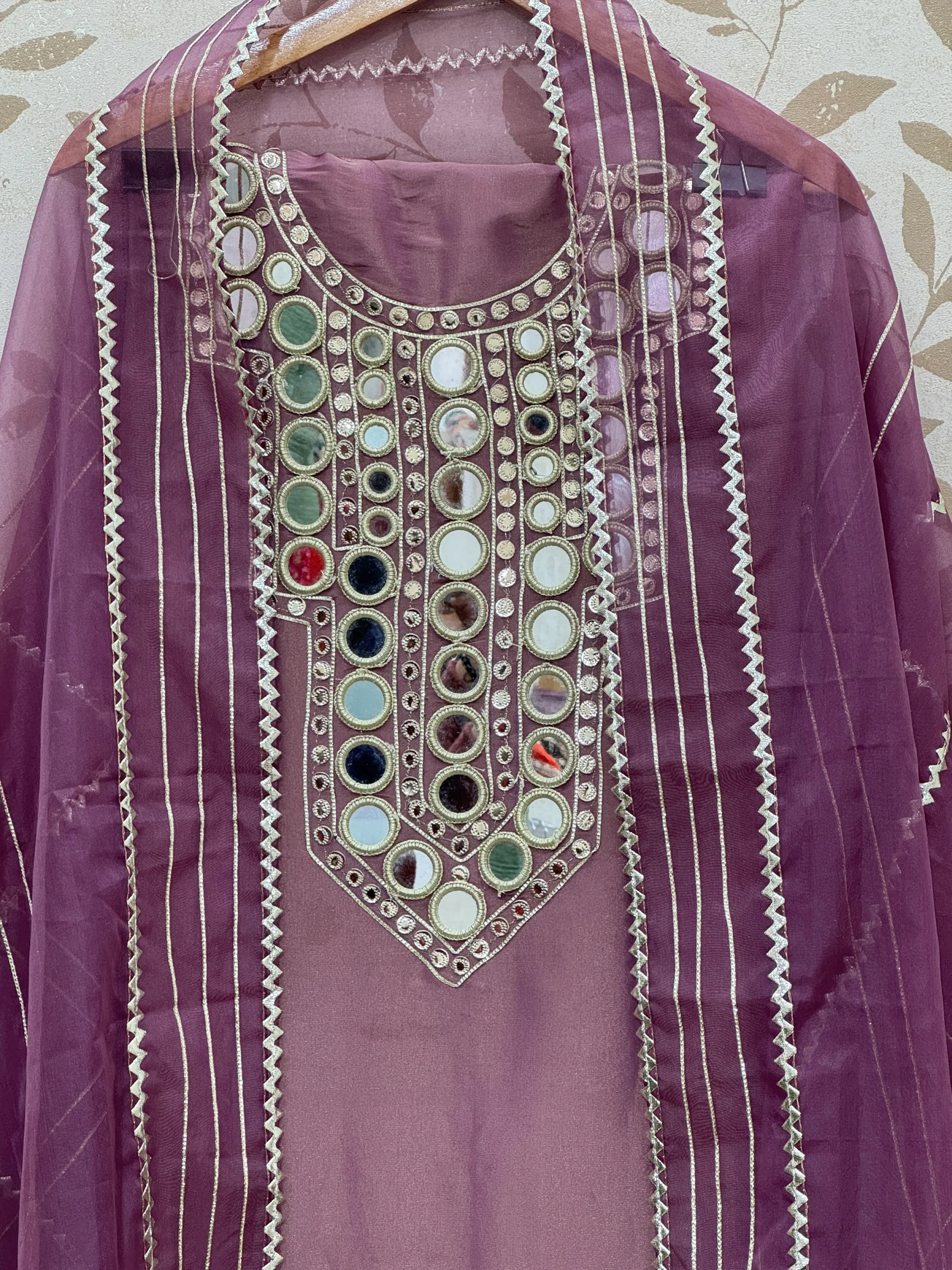 • Delicate mirror work border on hemline