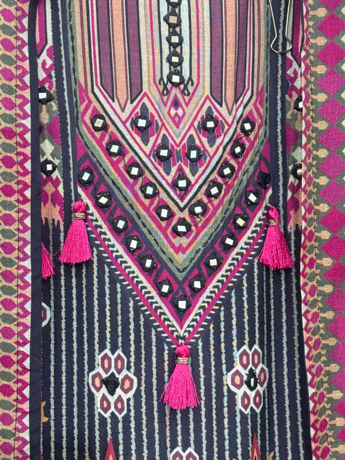 • Mirror work detailing on the neckline