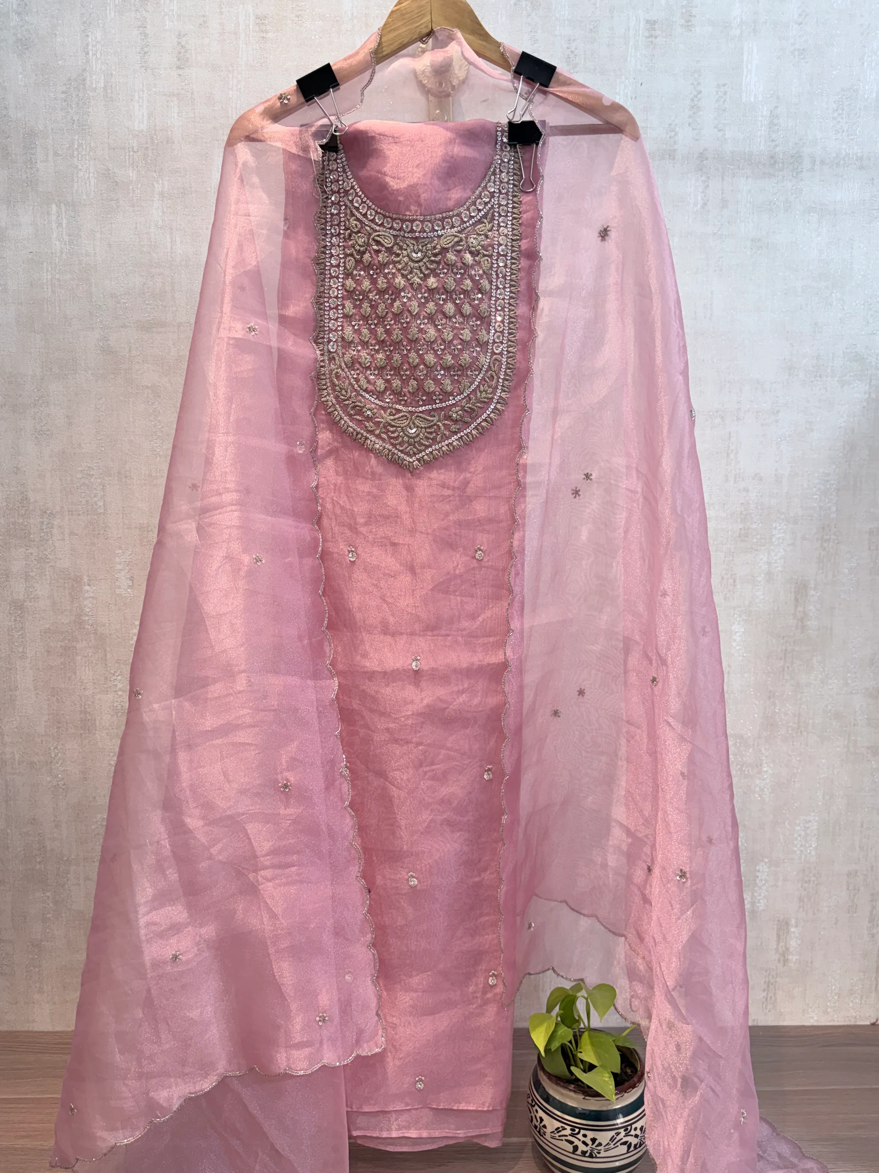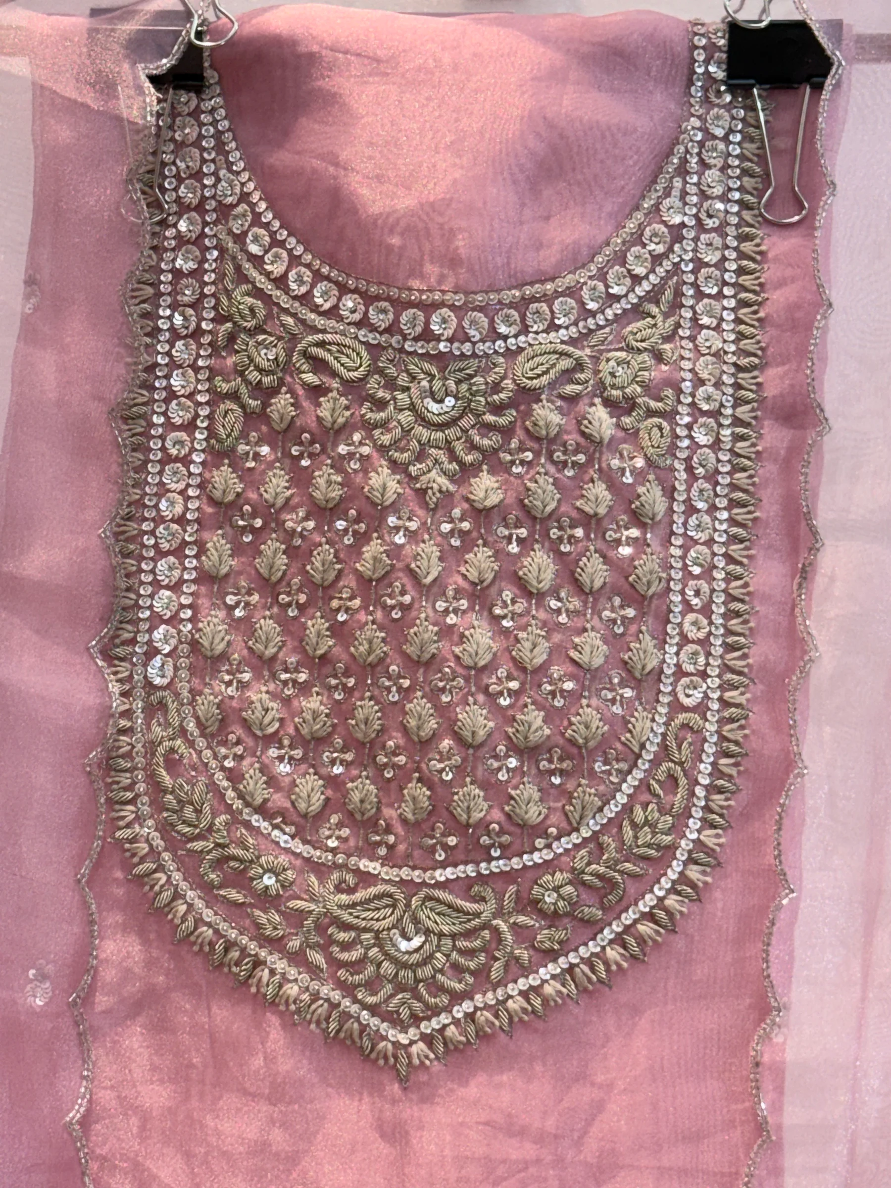 • Heavy handcrafted zari, resham & sequin embroidery on neckline and yoke