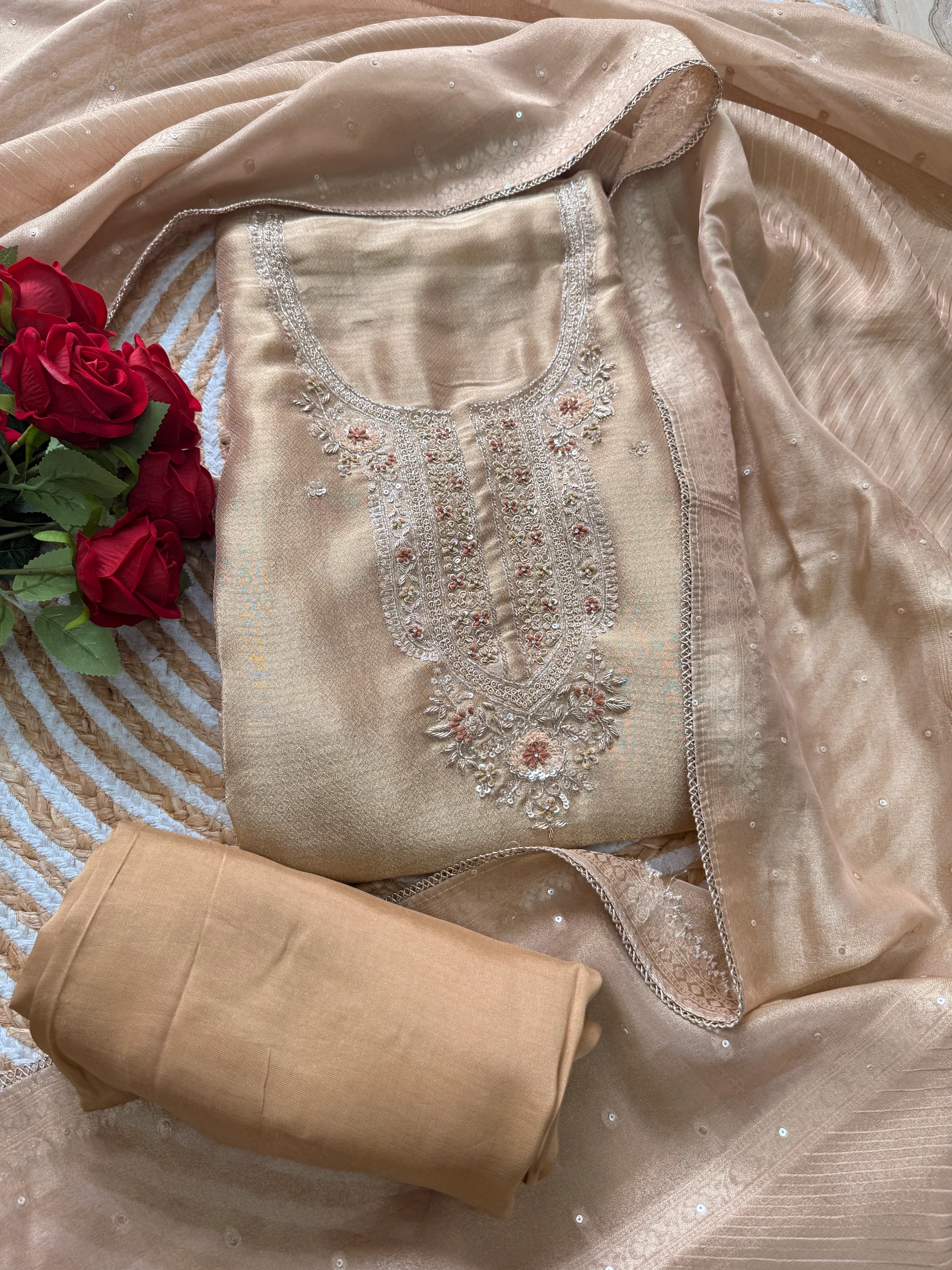 Handcrafted Silk, Chanderi, and Organza suit sets curated for the modern woman.