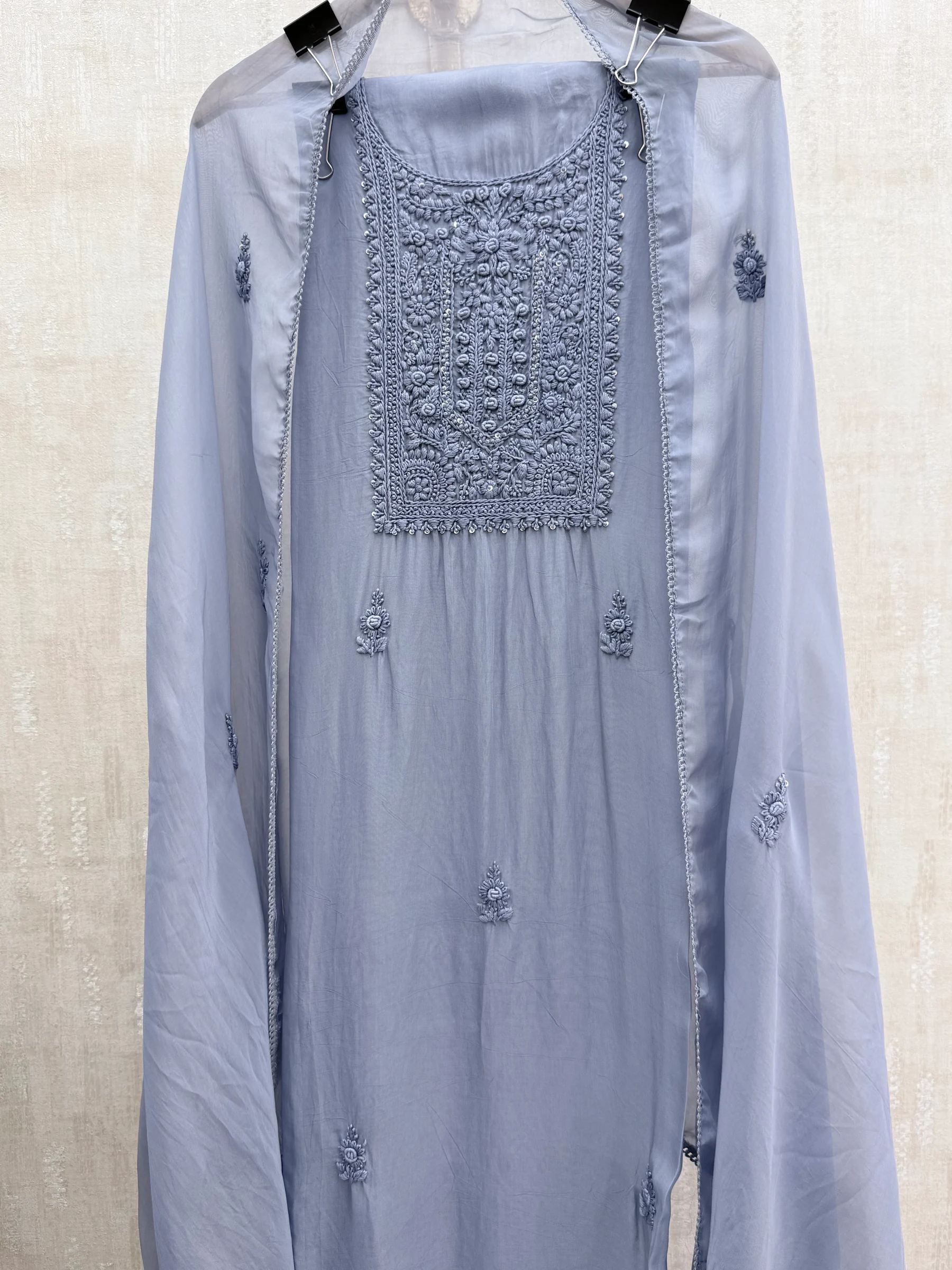 Powder Blue Organza Embroidered Suit
